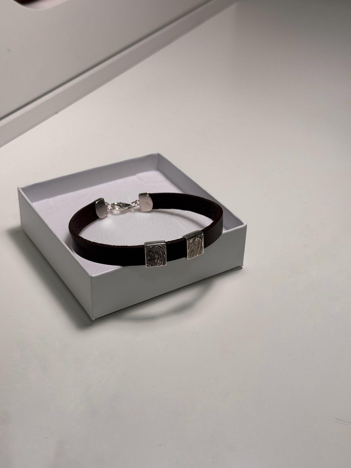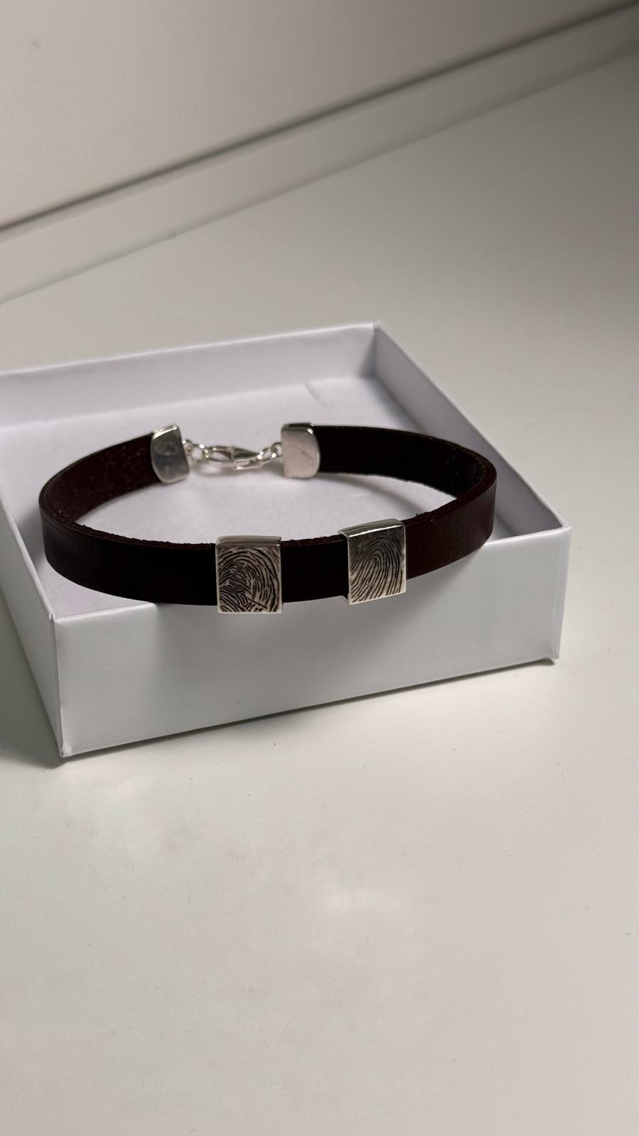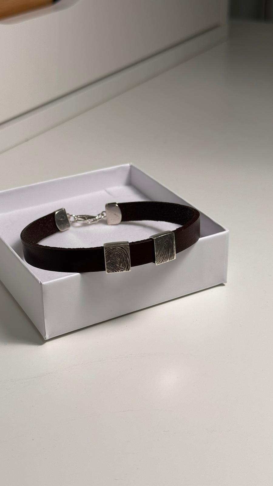 צמיד עור חום כהה בעובי 10 מ"מ בעל סליידר בכסף 925 עם חריטה של טביעת האצבע שלך עליו
